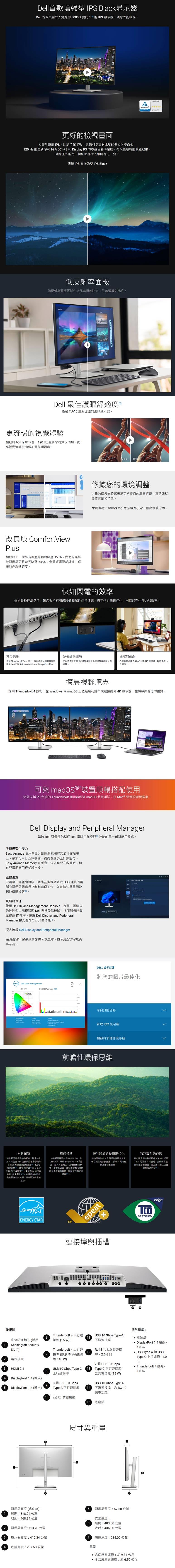 - 1 個 Thunderbolt 4 上行埠(DP1.4 (HDCP 2.2),支援 DSC,PD: 最高可達 140 W EPR,2/4 通道切換)