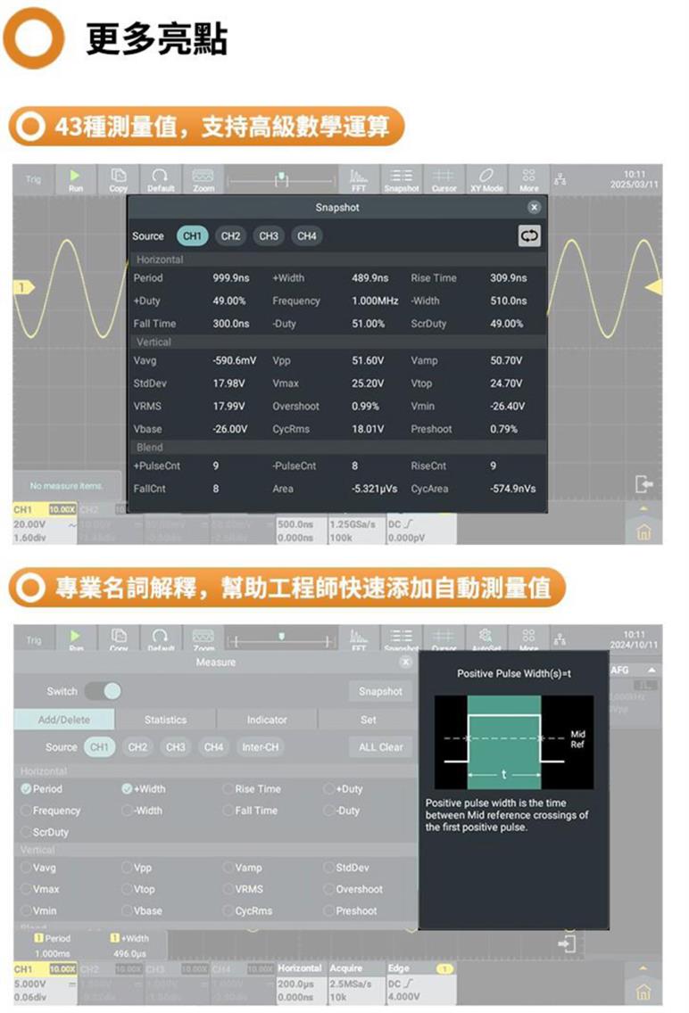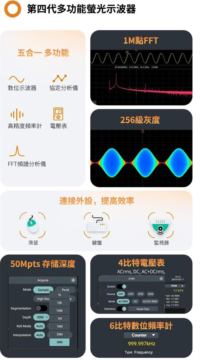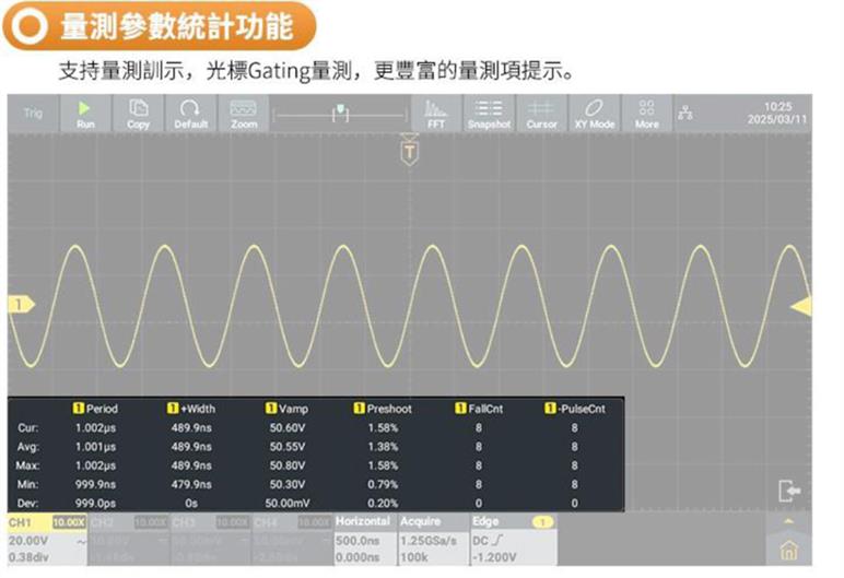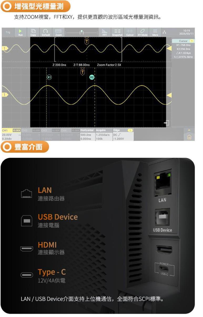 。垂直靈敏度500uV~10V,強弱訊號同屏無失真