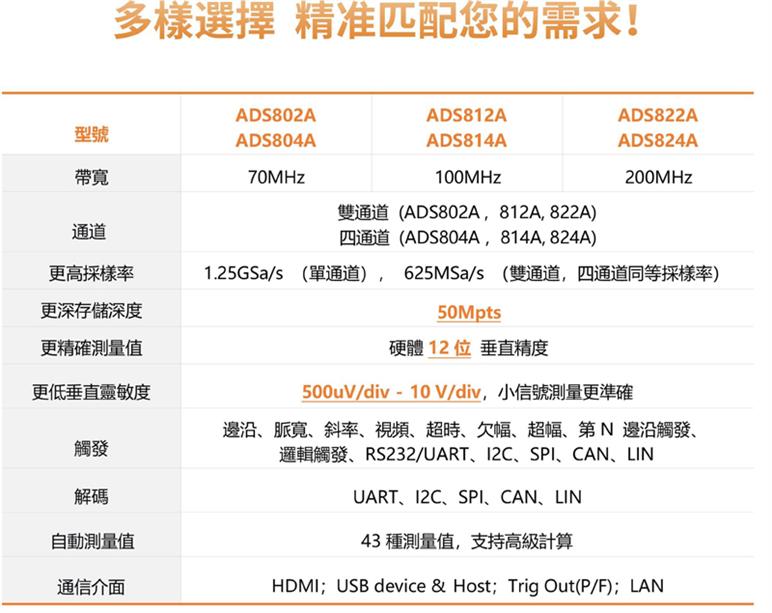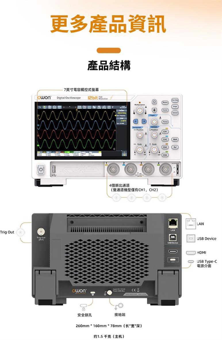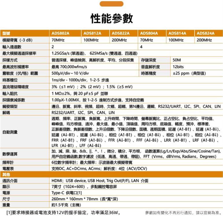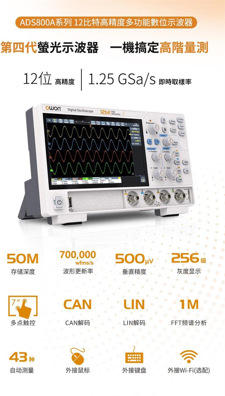 OWON ADS802A 70MHz頻寬/2通道數位儲存示波器 {{specImage.SkuName}}