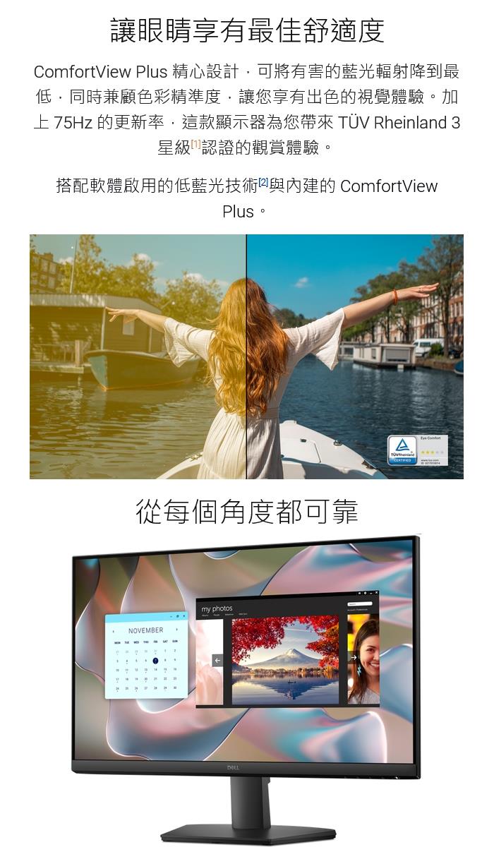 這款 23.8 吋顯示器可達到順暢 100 Hz 的更新率,並通過 TÜV Rheinland® 3 顆星眼部舒適度度認證,讓您輕鬆處理日常工作。