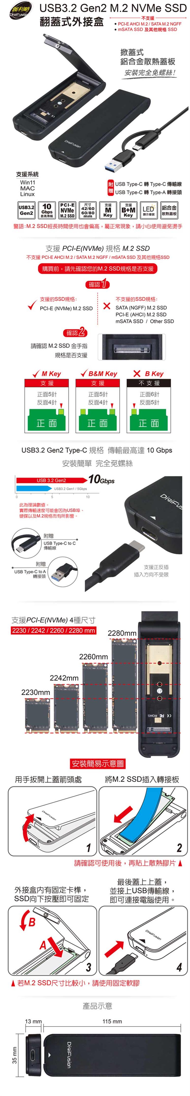 ■ USB3.2 Gen2 規格,傳輸最高可達10Gbps (電腦USB埠及M.2均需支援規格)