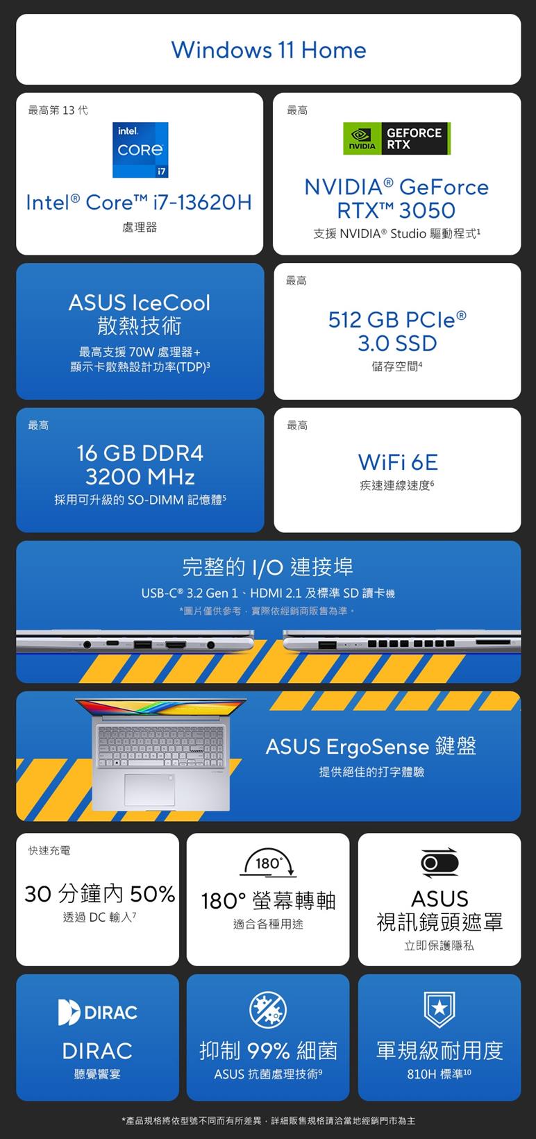 ASUS華碩 Vivobook 16X K3605VC-0182K13620H 16吋筆電 黑送筆電包+滑鼠 {{specImage.SkuName}}