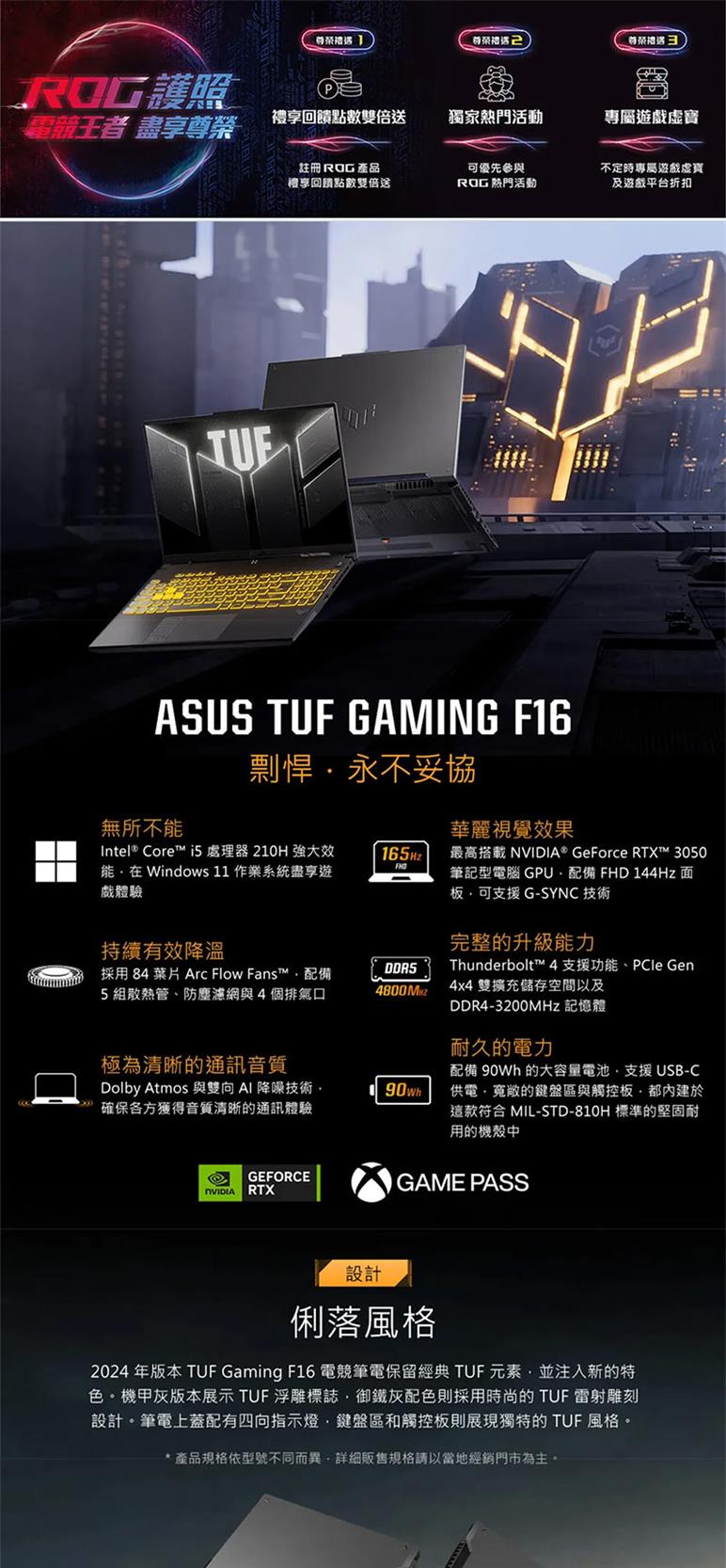 | 隨附配件 | 無附包包、附TUF電競滑鼠 |