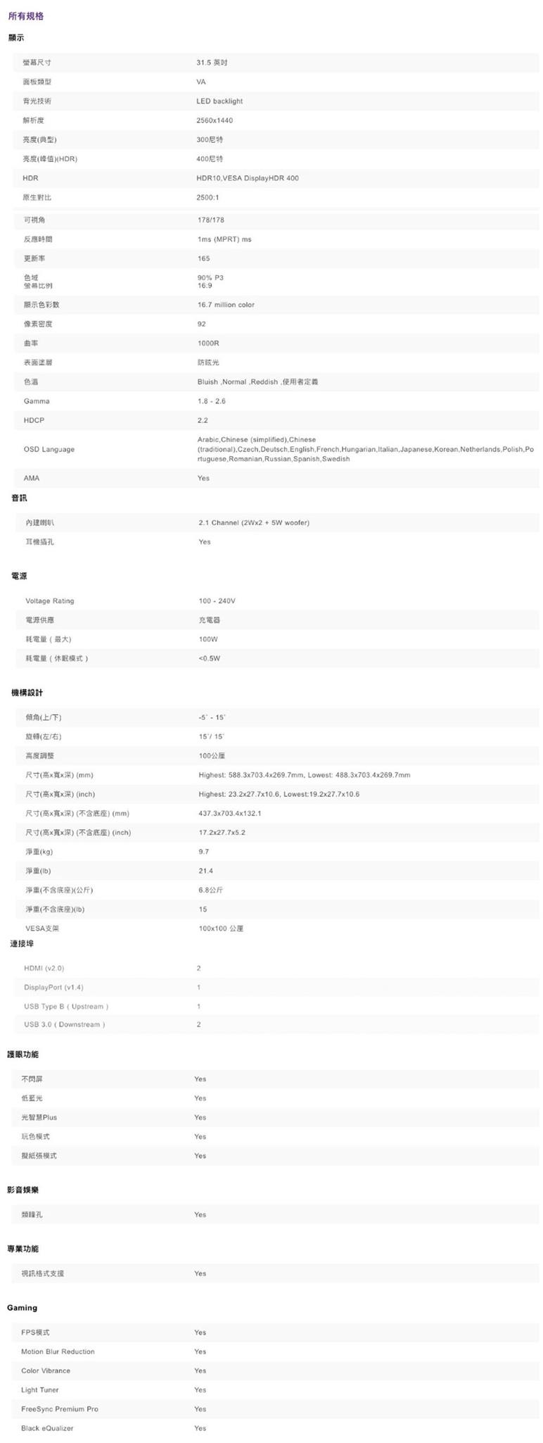 . 獨家類瞳孔技術 (HDRi) 搭配1000R曲面,帶來完美沉浸享受