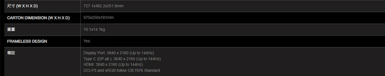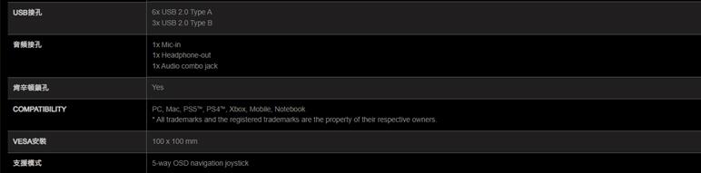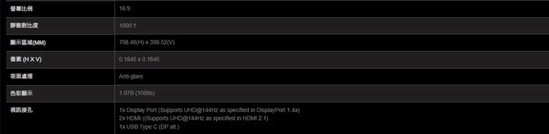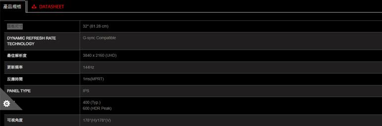 ● 亮度:400 (Typ.) 600 (HDR Peak)