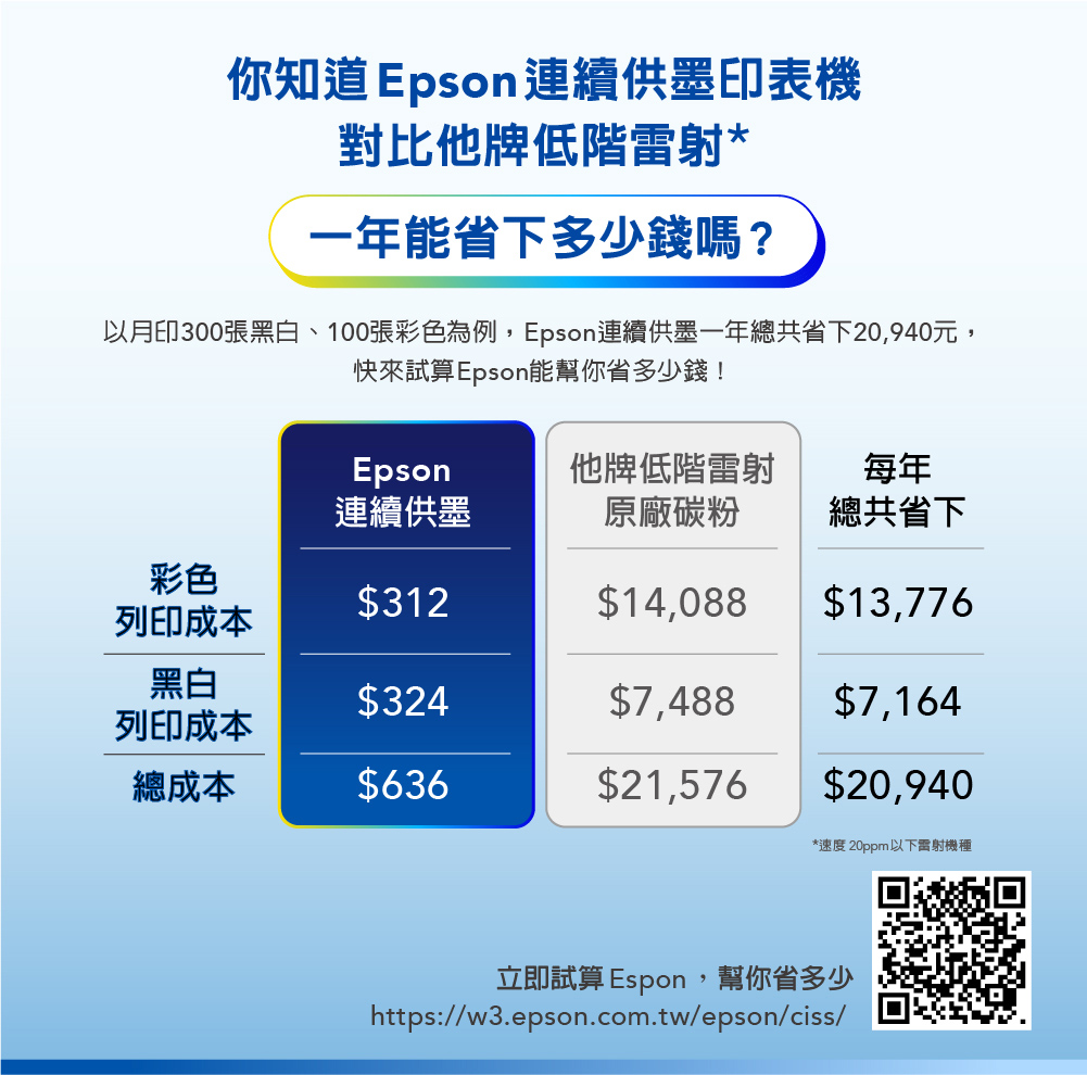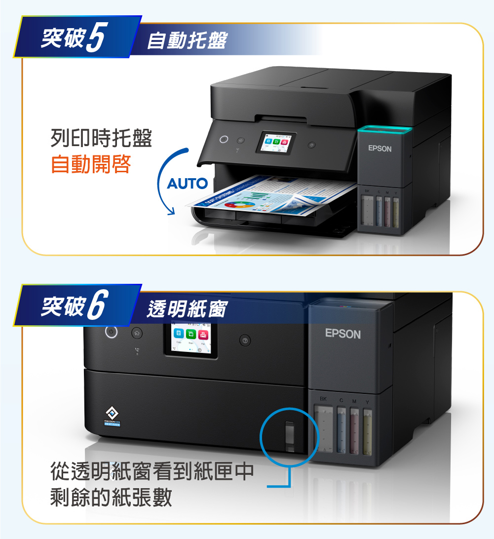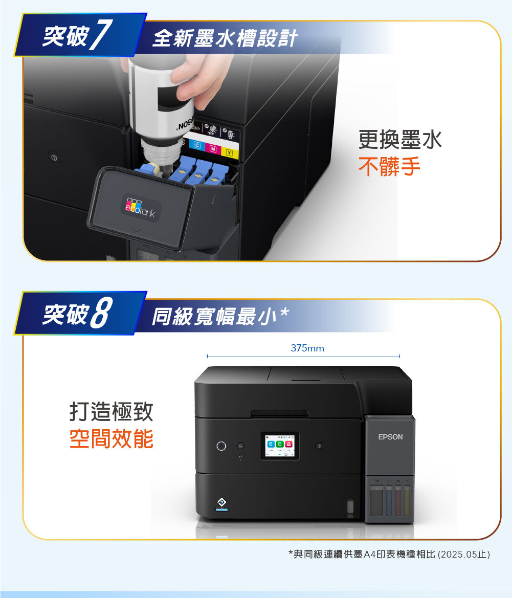 .省又安心:一組墨水可印黑白8,500張&彩色6,500張/加購墨水組享最高5年保固