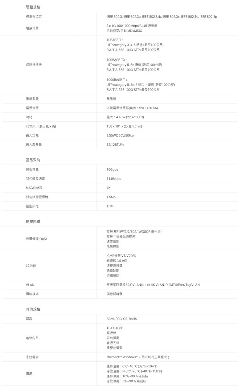 - .8 x 10/100/1000Mbps RJ45連接埠