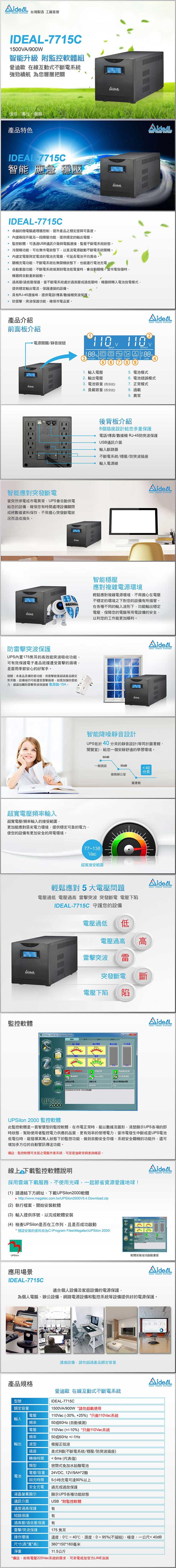 愛迪歐IDEAL 1.5KVA 在線互動式UPS不斷電系統 IDEAL-7715C