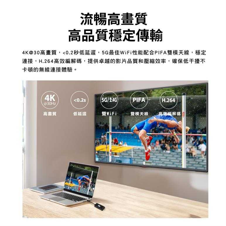 ● 1080P 60hz流暢高畫質,無線傳輸不卡頓