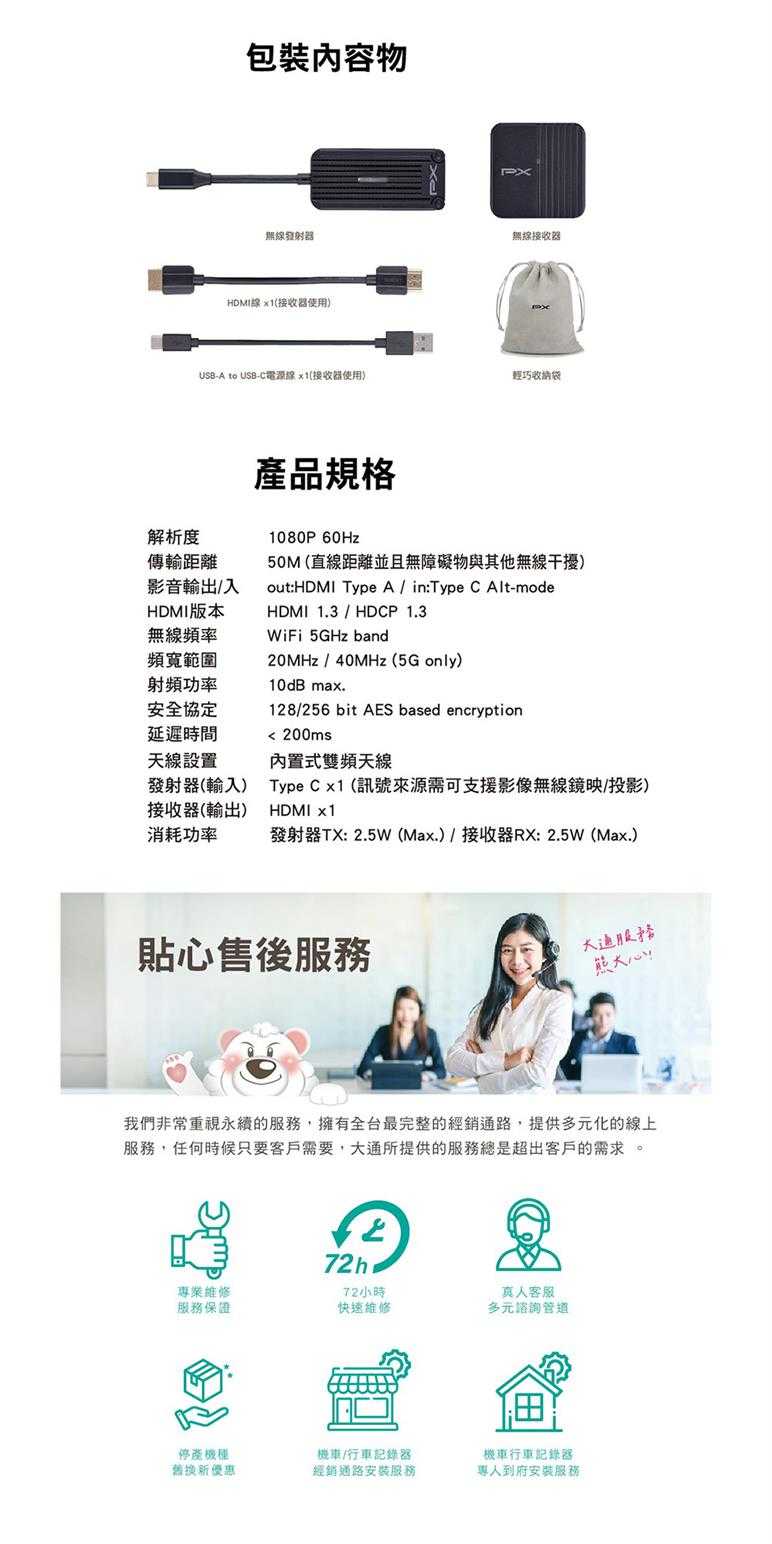 * 內含無線發射器x1、無線接收器x1、Type C - USB A電源線x1、