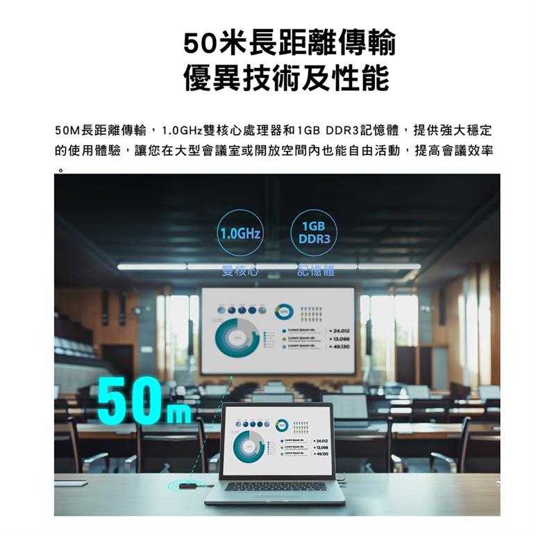 超低功耗 極致節能、高效散熱 確保畫質流暢、50M長距離、1.0GHz雙核心、1GB DDR3記憶體