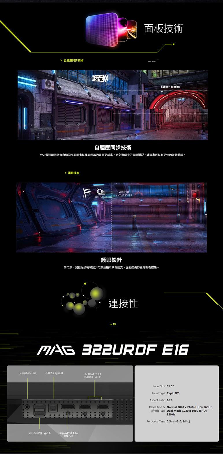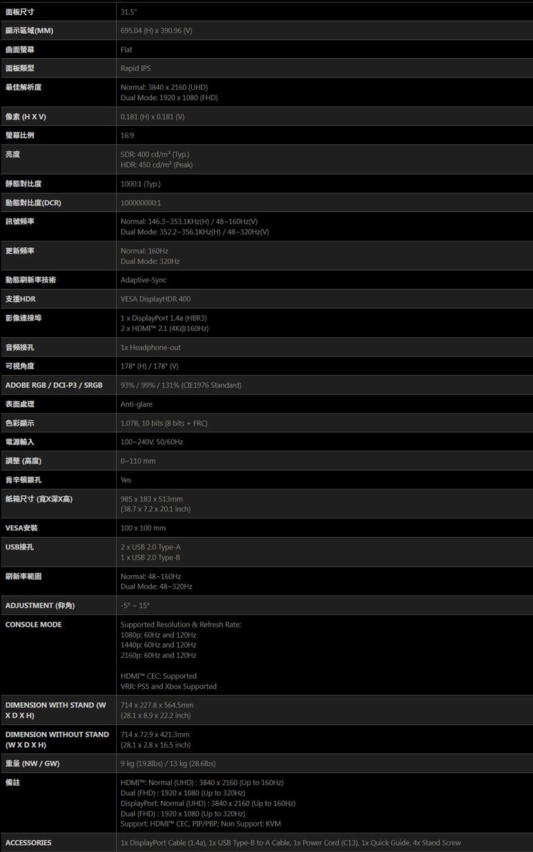 ● 面板尺寸:32吋 Rapid IPS 面板
