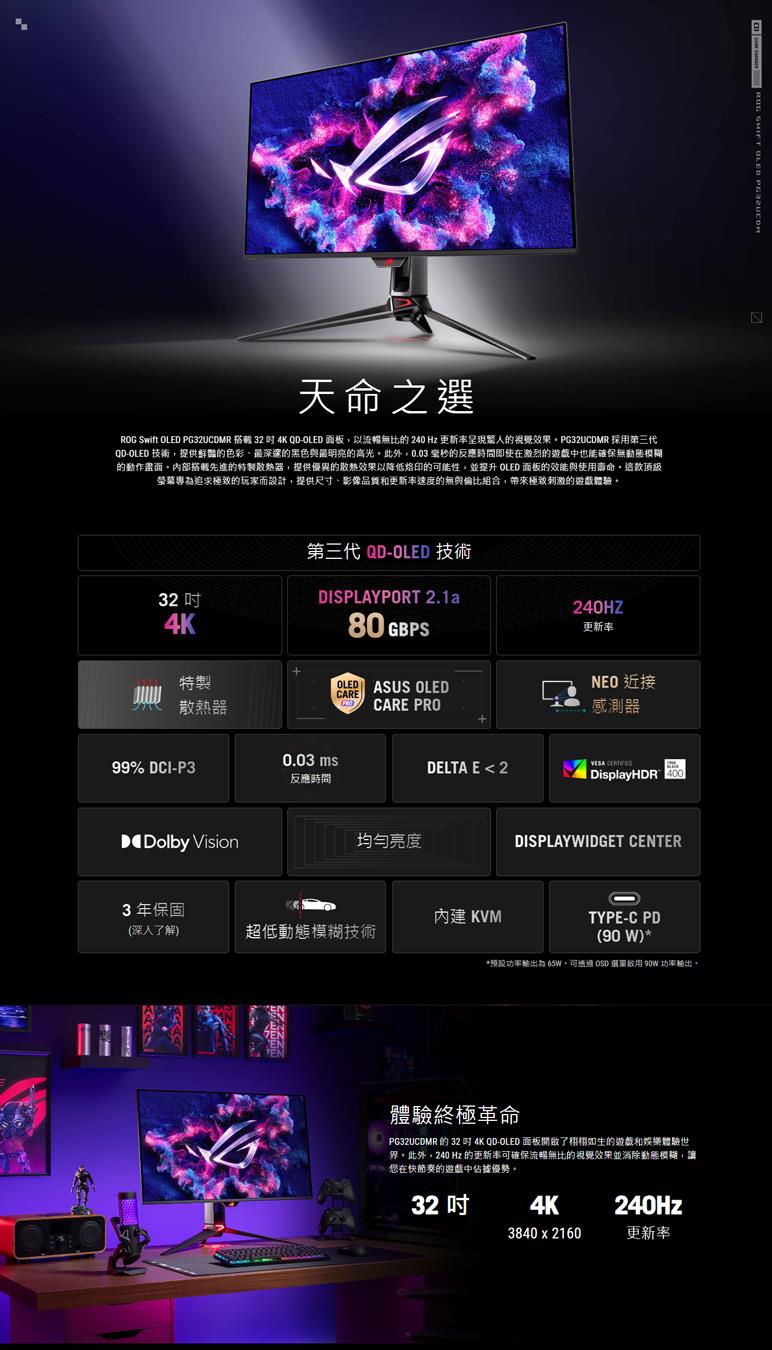 ASUS華碩 32型 ROG Swift OLED PG32UCDMR 電競螢幕