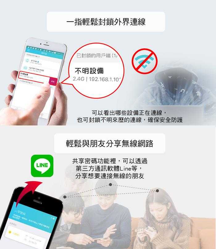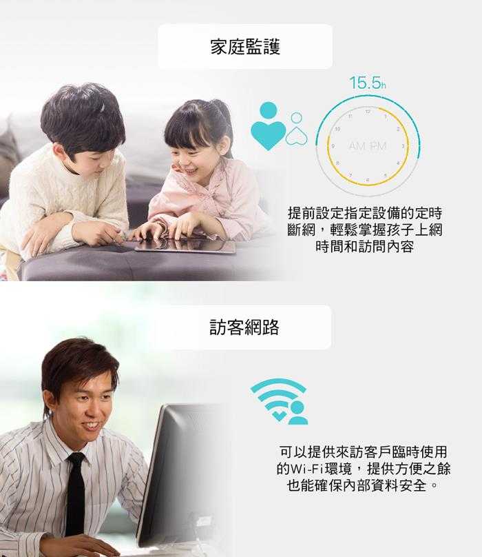 訪客網路功能提供額外供給訪客使用的無線網路,只需簡易的設定,便不用擔心您的私人網路會被使用。