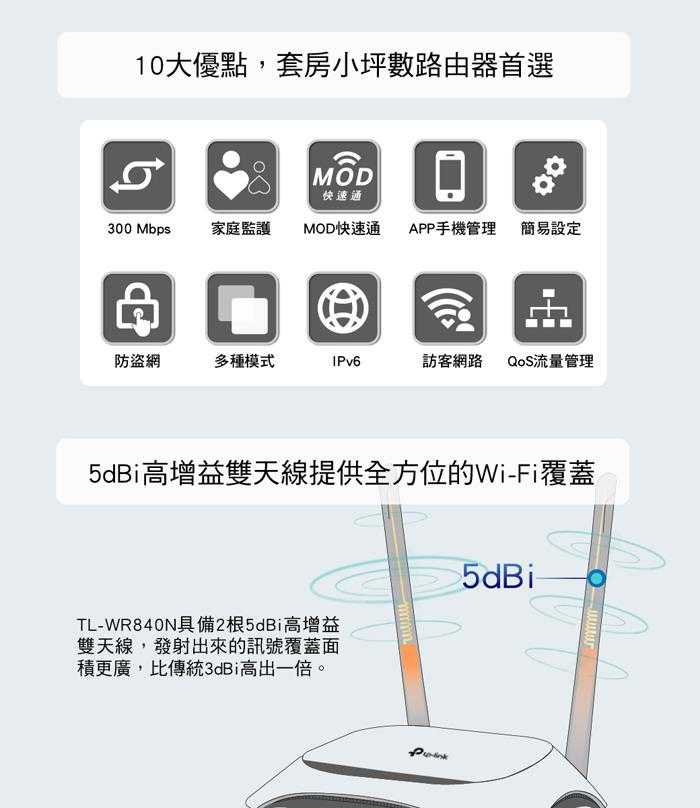 300Mbps無線網路傳輸,適合個人、家庭網路使用支援基地台模式,您可以建立自己的無線基地台支援訊號延伸器模式,能增強您原有的無線訊號範圍