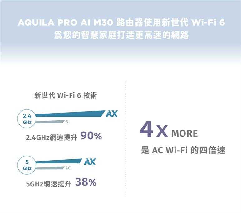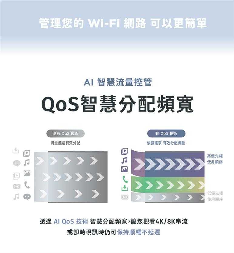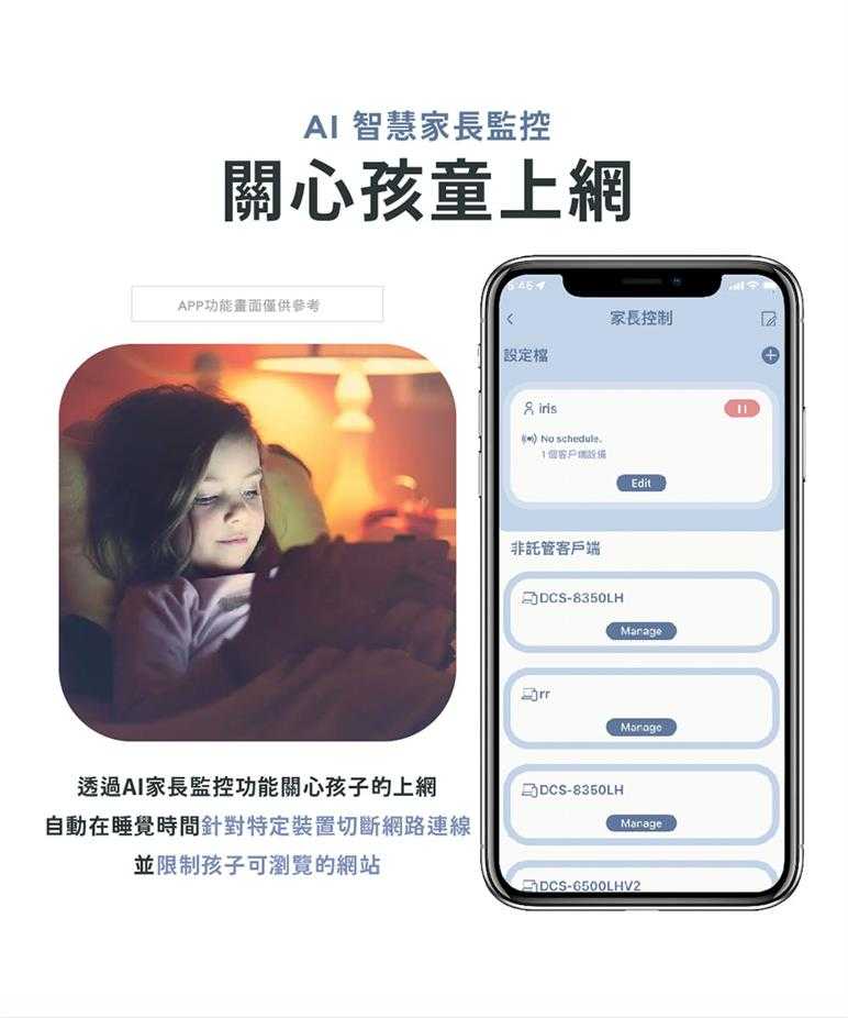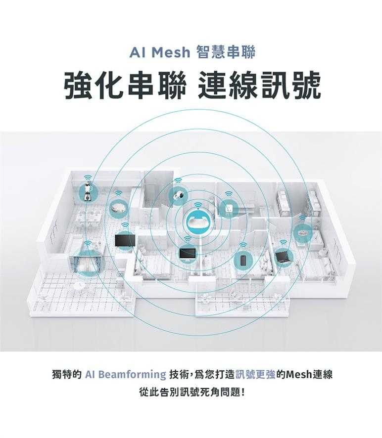 ● APP:自動智慧連上最佳的Wi-Fi頻道、AI QoS智慧流量管理、家長監控