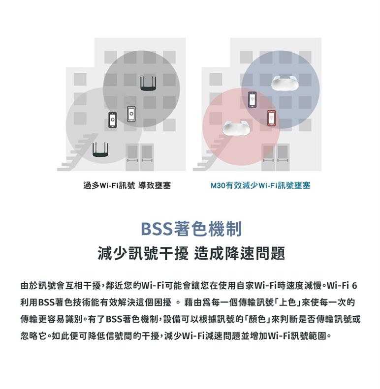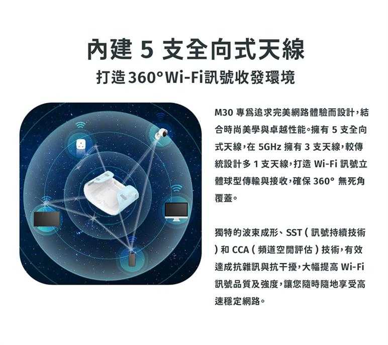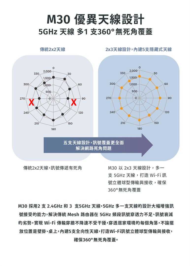 ● 每台 M30 可提供 75 坪涵蓋範圍/頻寬160MHz