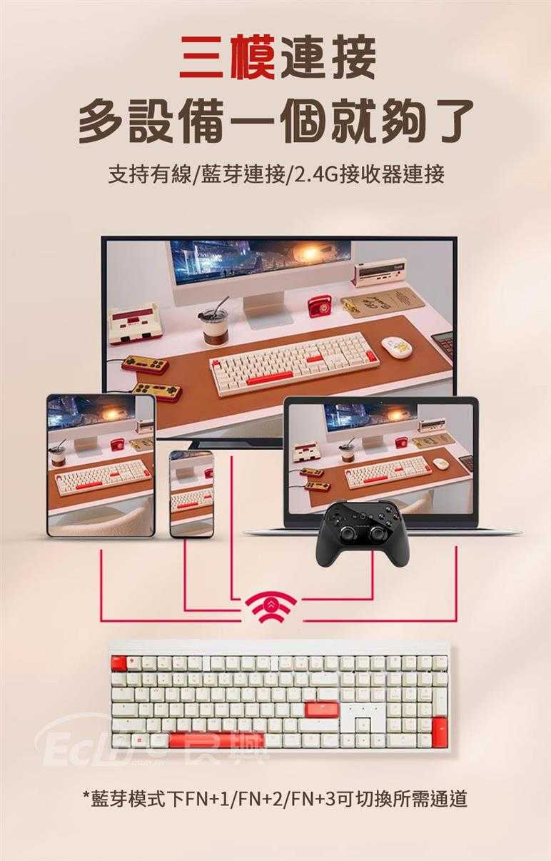 無線設計:採用藍牙和2.4GHz雙模無線連接,提供更多使用自由度,避免線纜纏繞的困擾。