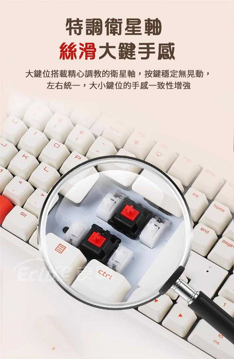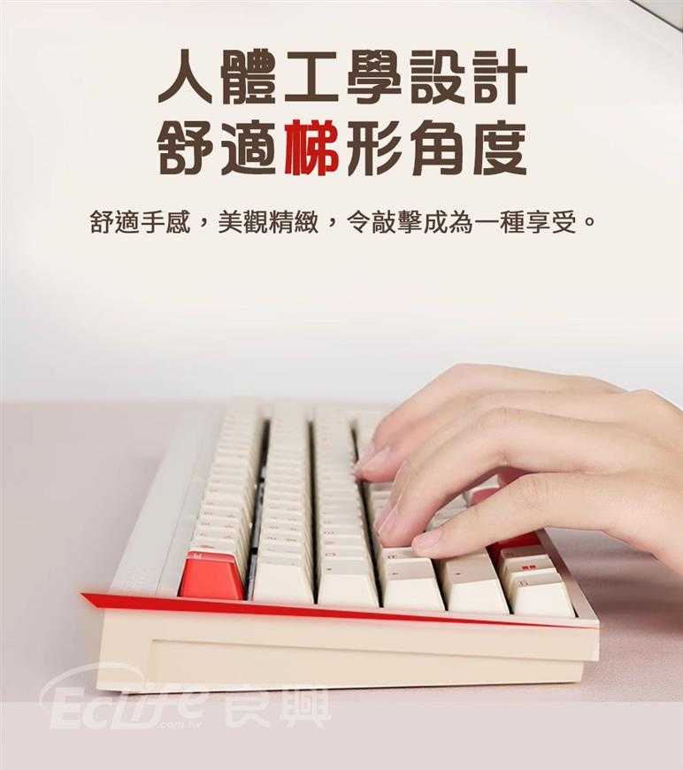電源按鈕設計在鍵盤頂部,位置順手開關,且開關設計與鍵盤表面平行,減少玩家誤觸
