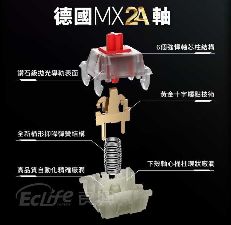 低延遲卻有超耐久電力 : 採用MX2A軸體與最新觸發晶片,讓反應速率<1ms且電力超過200小時,使用者面對各種任務事半功倍。