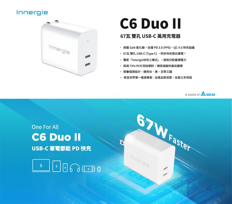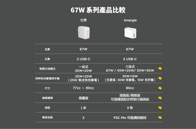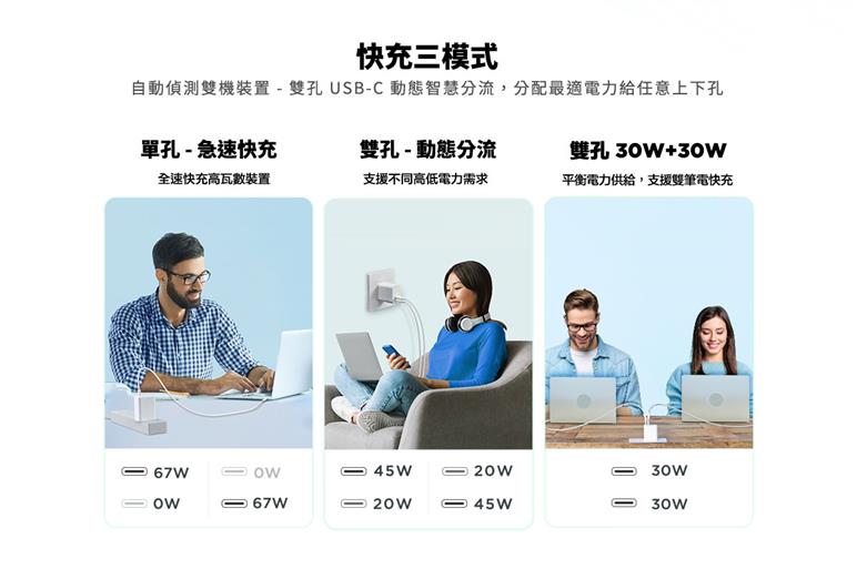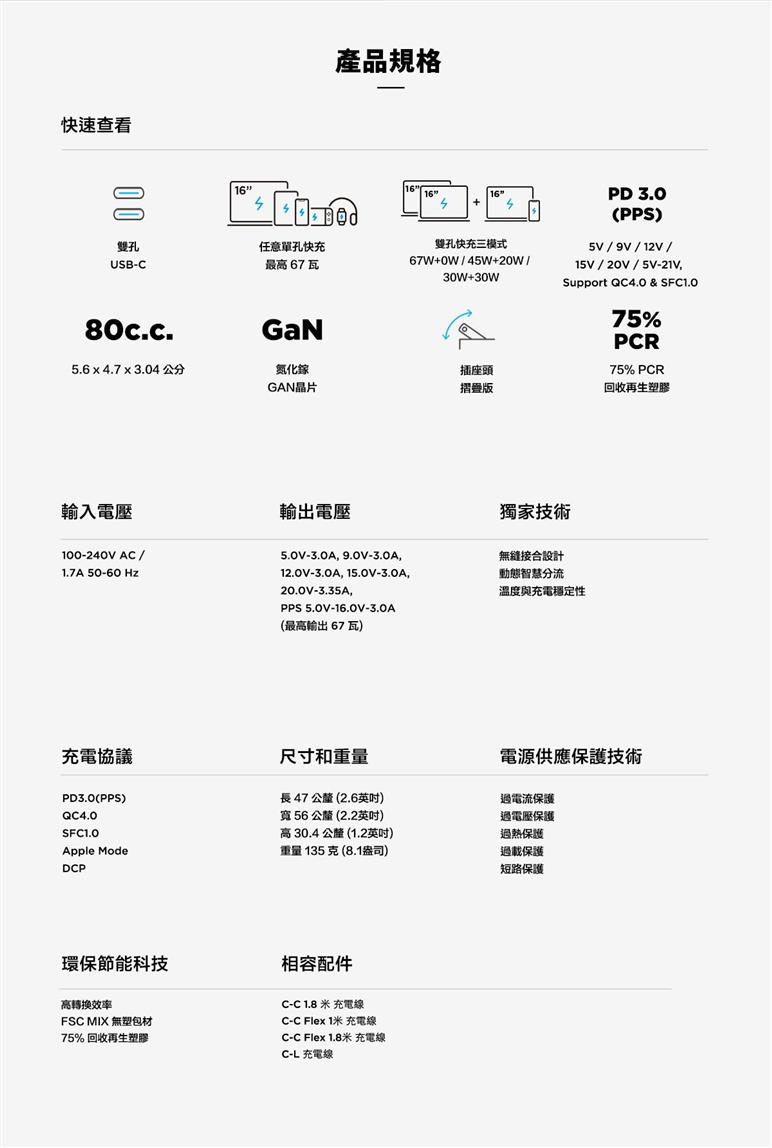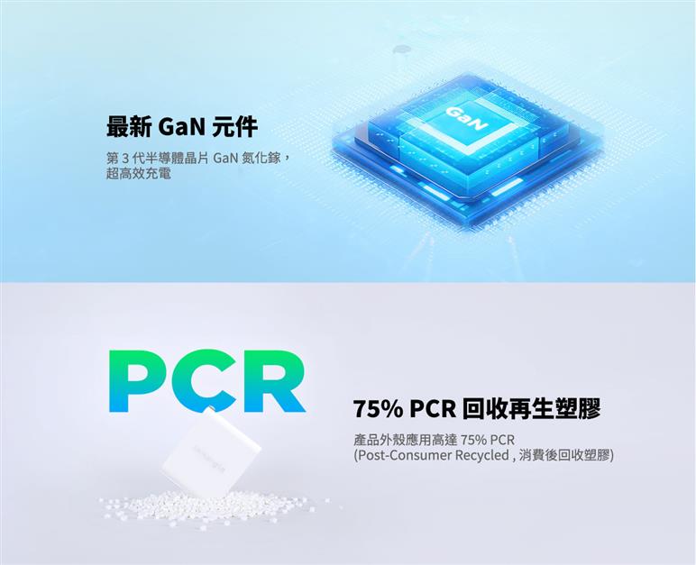 - 搭載全新材料|最新GaN氮化鎵元件,超高效充電