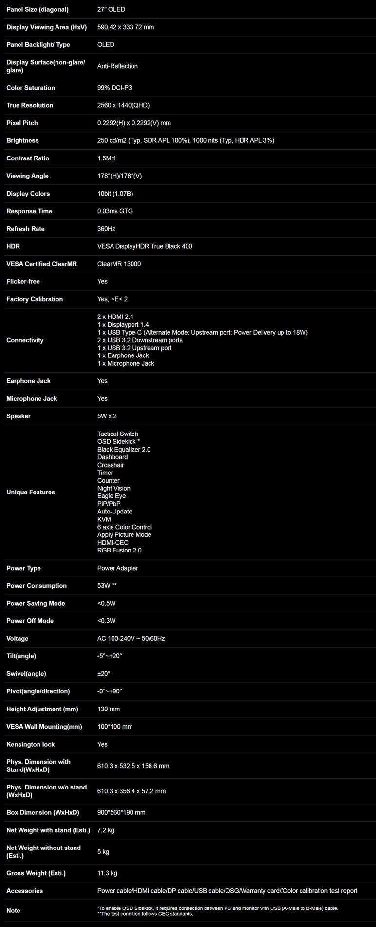 ● 亮度:250cd/m2(TYP) / 1000cd/m2(HDR)