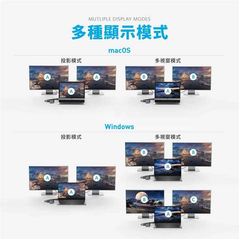 ● 4K高畫質輸出、多種顯示模式:投影模式、多視窗模式