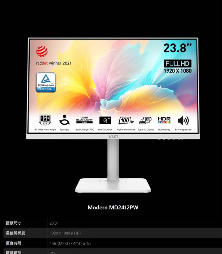 ● 反應時間:1ms (MPRT) / 4ms (GTG)