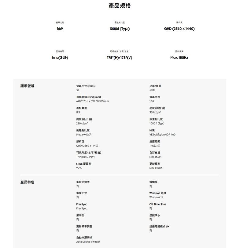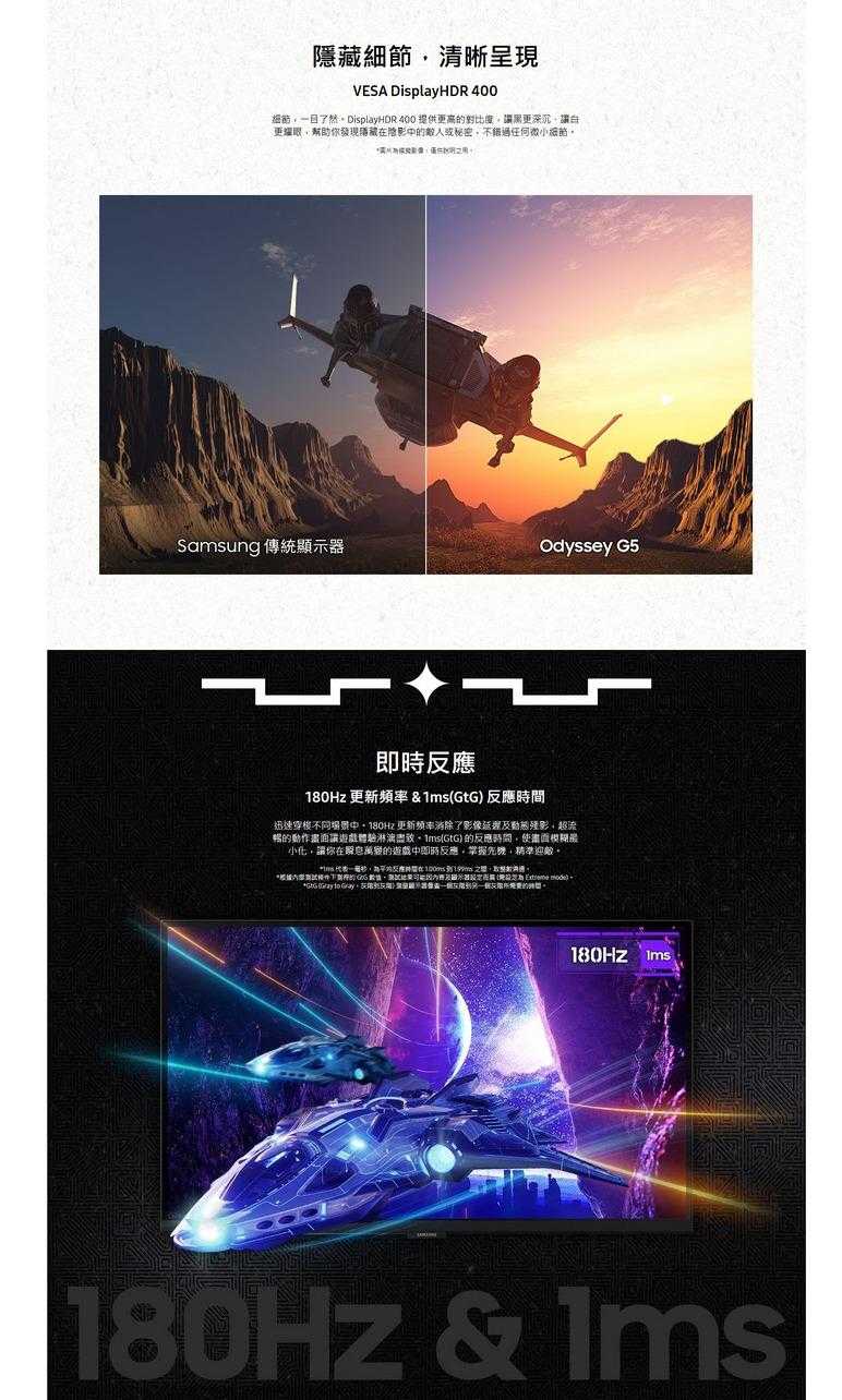 SAMSUNG三星 32型 Odyssey G5 2K 平面電競顯示器 S32DG502EC {{specImage.SkuName}}