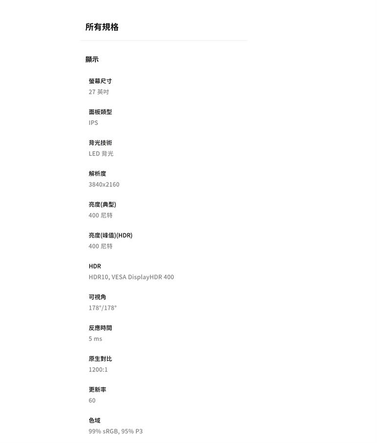 ● 面板尺寸:27吋 IPS