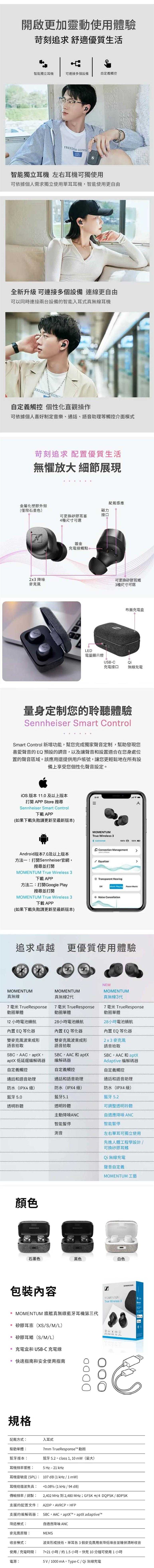 Sennheiser森海塞爾 Momentum True Wireless 3 真無線藍牙耳機 黑 {{specImage.SkuName}}