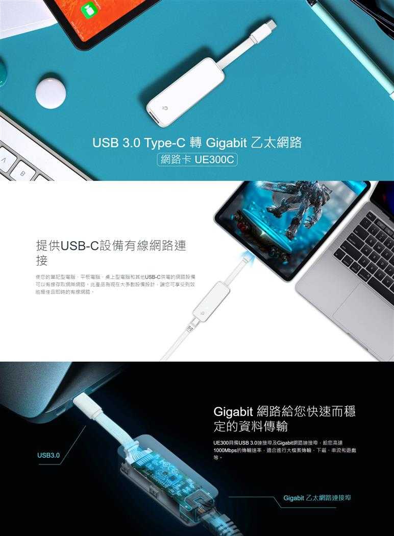 TP-LINK UE300C USB Type-C Gigabit乙太網路卡 {{specImage.SkuName}}