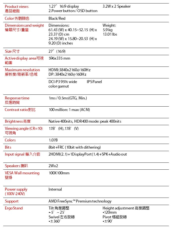 ● 更新頻率:160Hz
