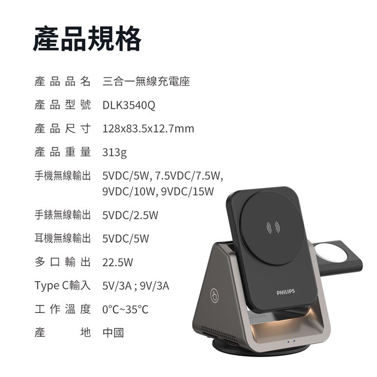 包裝附件:DLK3540Q無線充電器*1 + USB-C傳輸充電線*1 + 使用說明書*1