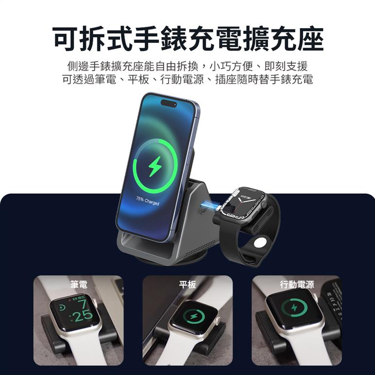 智慧型功率輸出,手機、耳機、AppleWatch可同時充電