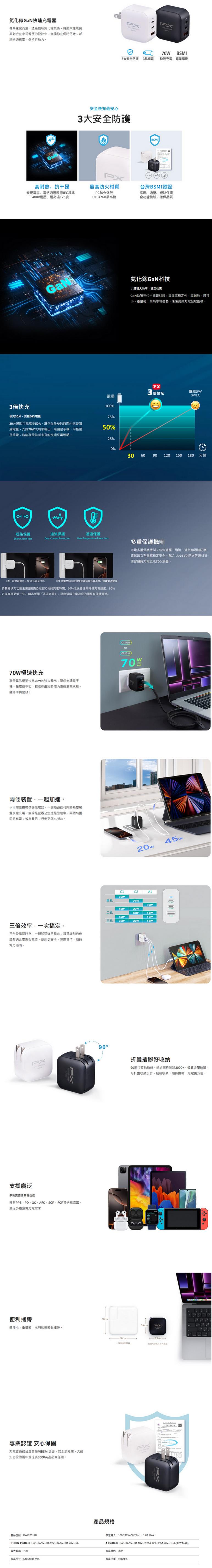 多孔設計: 支援多款設備快充,一顆即可滿足需求