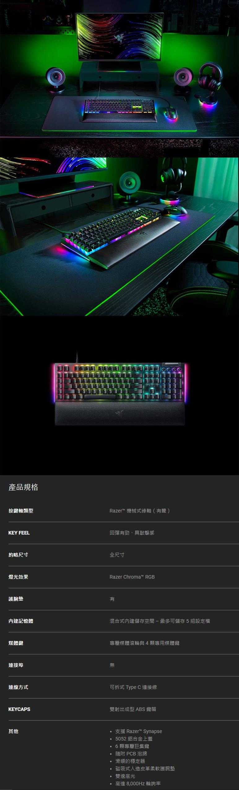 Razer 雷蛇 BlackWidow V4 黑寡婦 V4 幻彩多功能滾輪遊戲鍵盤 綠軸 中文