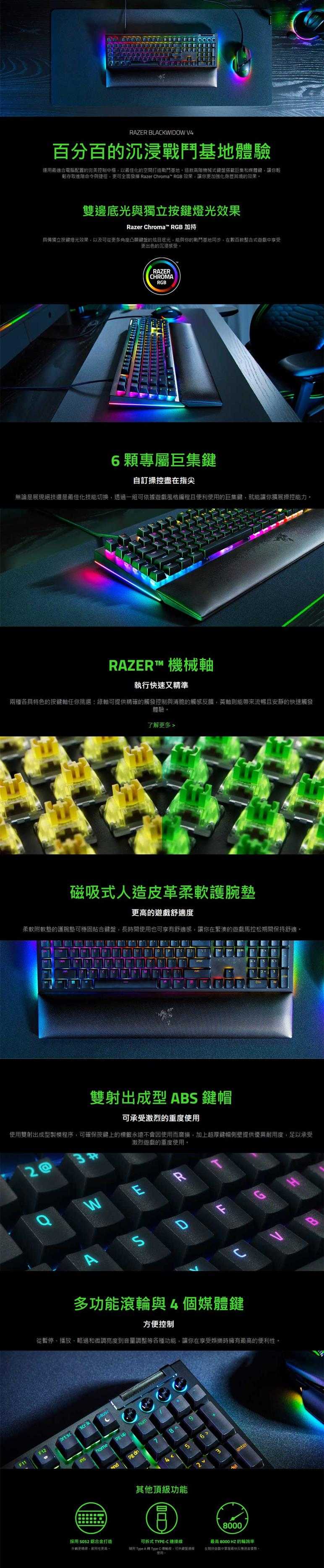 Razer 雷蛇 BlackWidow V4 黑寡婦 V4 幻彩多功能滾輪遊戲鍵盤 綠軸 中文 {{specImage.SkuName}}