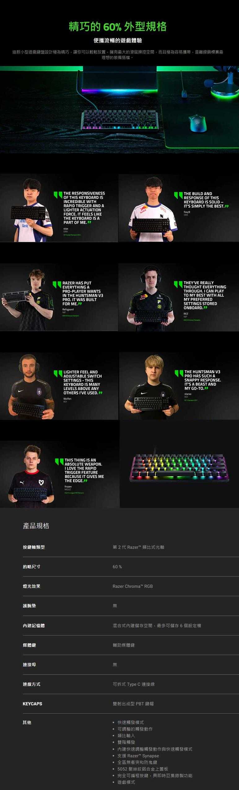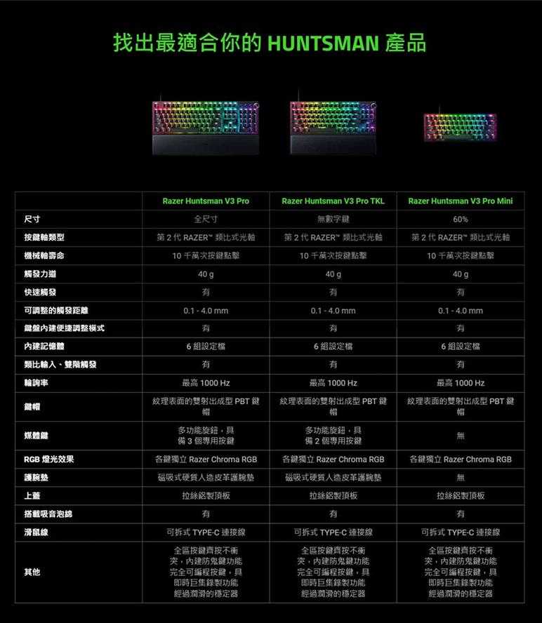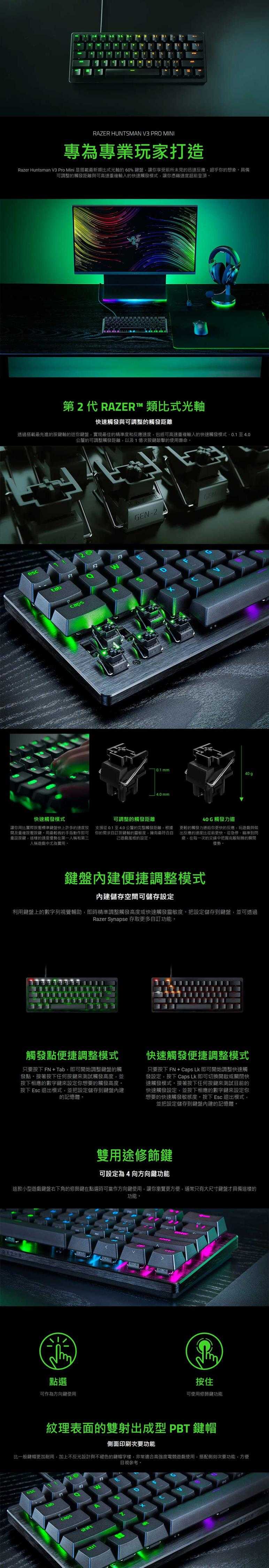 Razer 雷蛇 Huntsman V3 Pro Mini 獵魂光蛛 60%類比式光軸電競鍵盤 中文 {{specImage.SkuName}}
