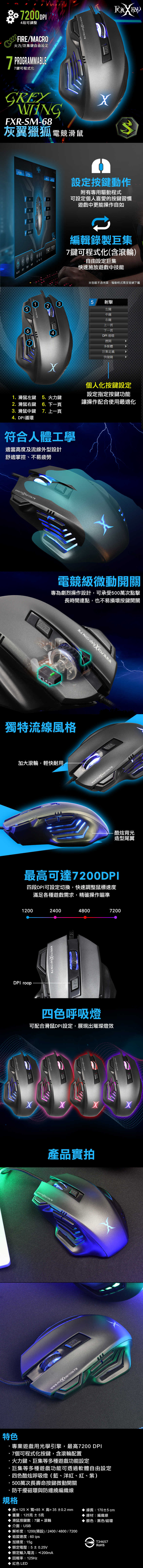 FOXXRAY狐鐳 灰翼獵狐 電競滑鼠 (FXR-SM-68) {{specImage.SkuName}}
