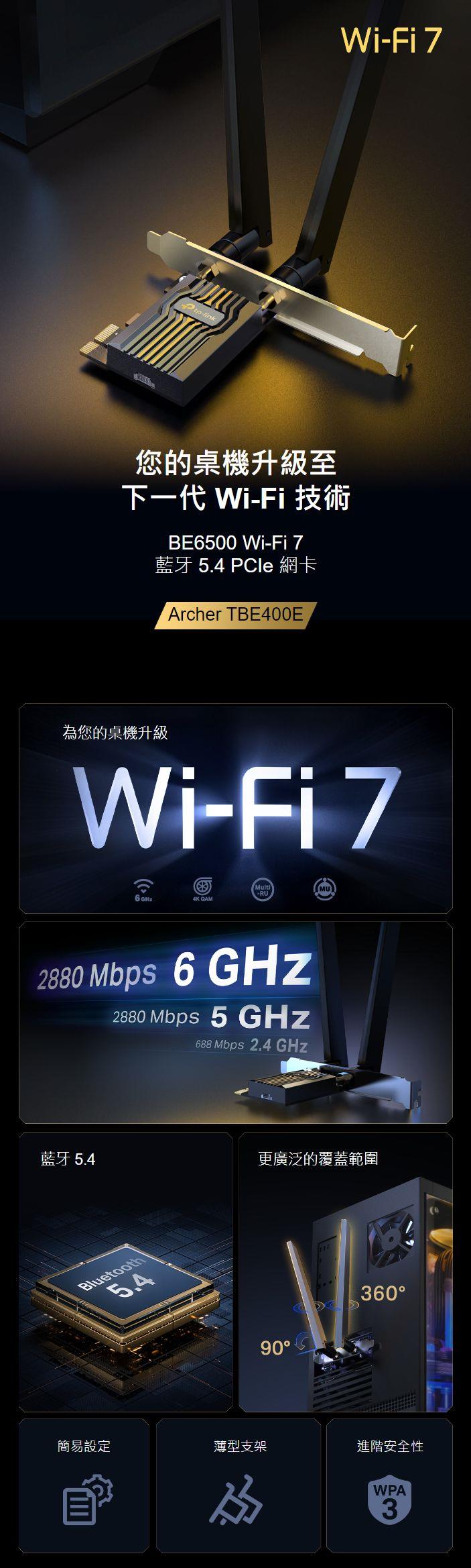 - WiFi 7 協定 — 釋放 6 GHz 頻段的全部潛力,使上一代頻寬增加一倍