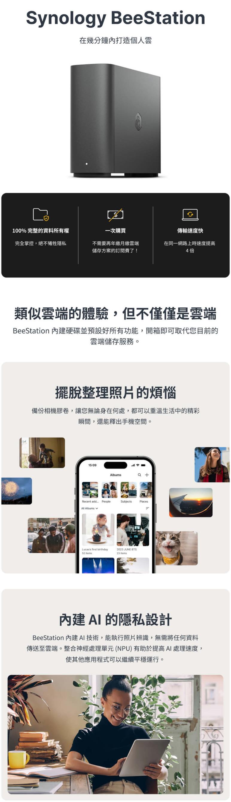 Synology 群暉科技 BeeStation 4TB 個人雲端儲存 {{specImage.SkuName}}