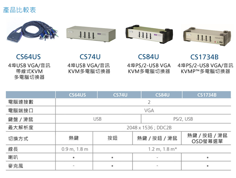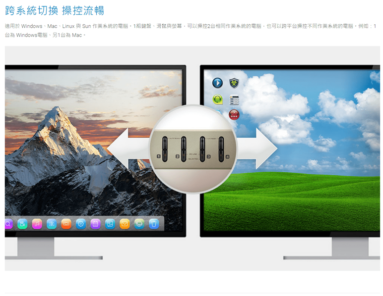 ● 可透過前端面板按鍵、熱鍵與滑鼠切換電腦