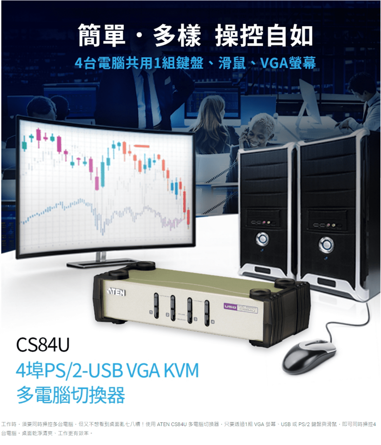 CS84U安裝簡易且快速,僅需將線材連接至適當的連接埠,不需設定或安裝軟體,且不會有不相容的問題;此外,CS84U可直接擷取鍵盤輸入訊號,能支援跨平台的運作。