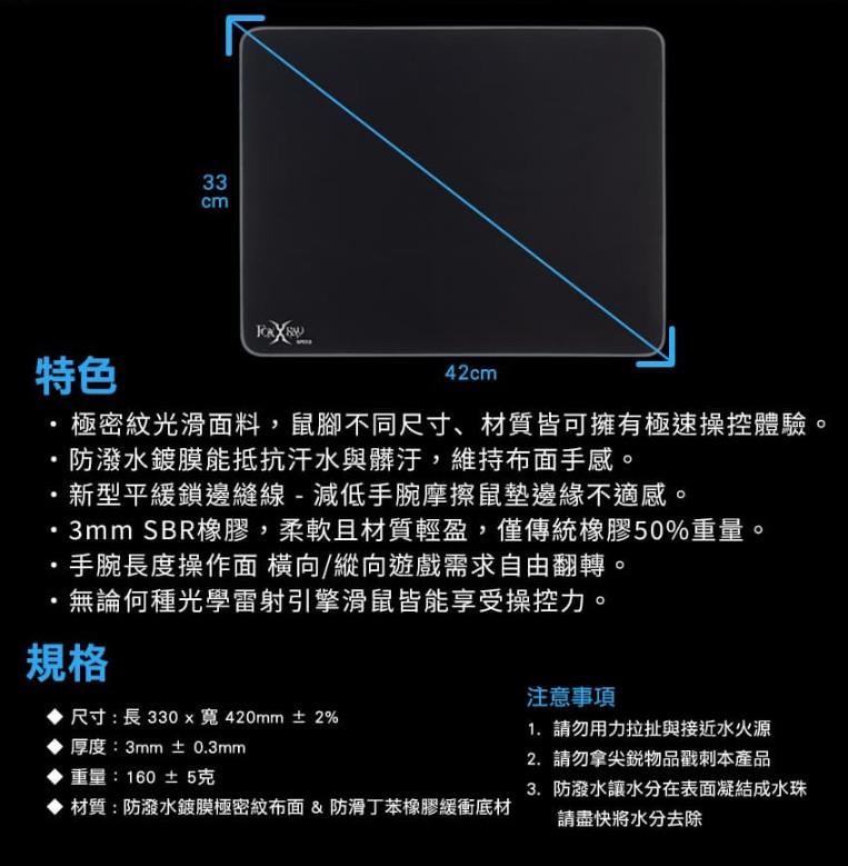 ●特密紋光滑面料,各尺寸滑鼠與鼠腳也有極速操控體驗