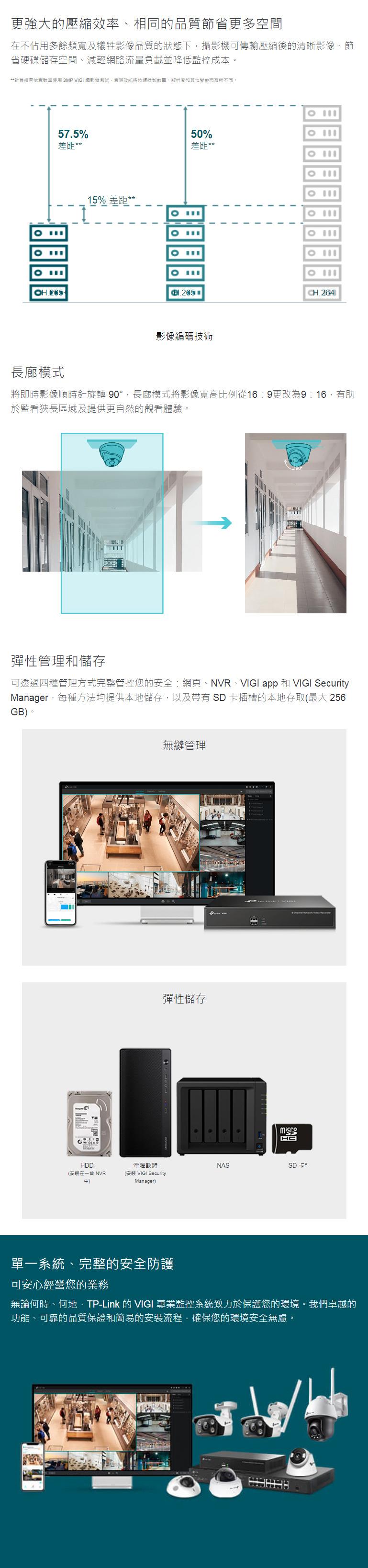 - 靈活管理:透過四種管理方法完全的監控您的安全性:Web UI、NVR UI、VIGI App 和 VIGI Security Manager。每種方法均提供本地儲存,同時還支援使用搭載 SD 卡槽的機身來儲存(最大可擴充至 256GB)。