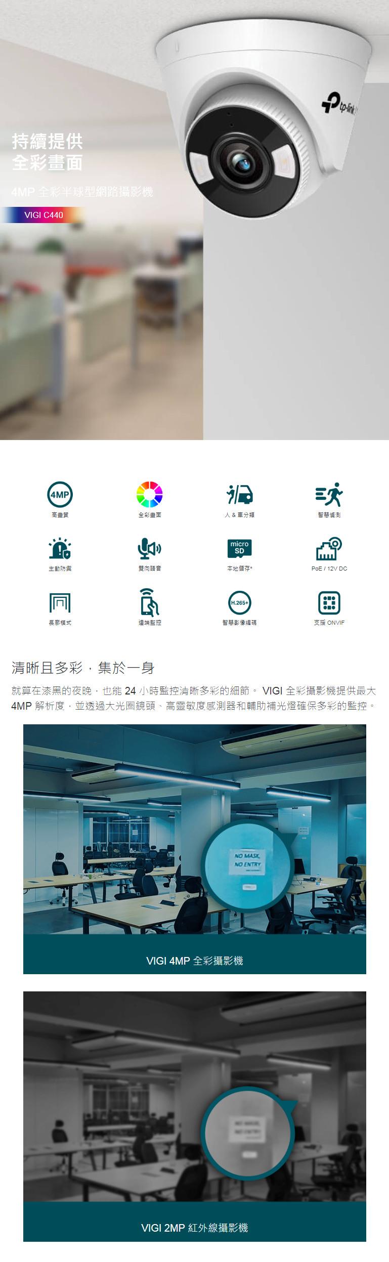 - 4MP 高畫質:VIGI C440 攝影機提供高達 4MP 的影像 – 更高的畫質帶來更細節的影像。