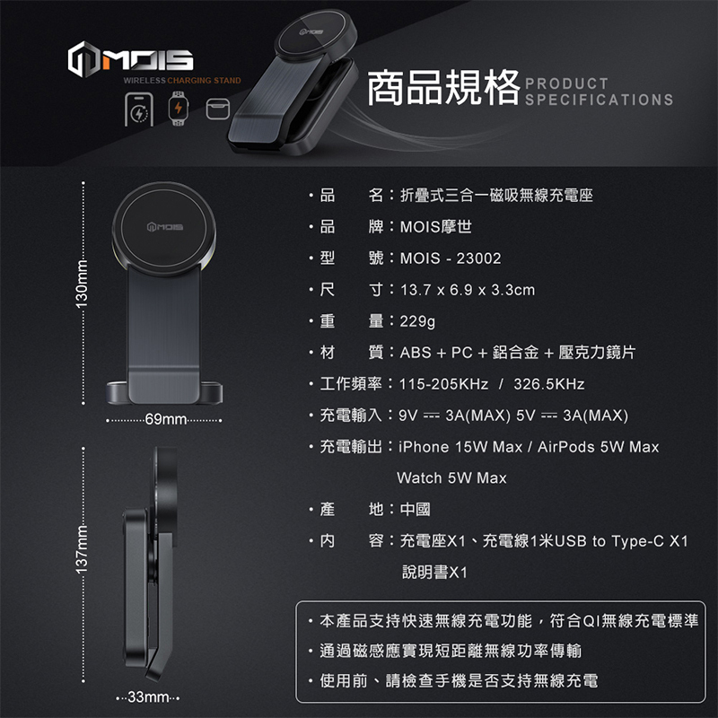 .輸出(手機充電):iphone 15w MAX / Airpods 5w MAX / Watch 5w MAX