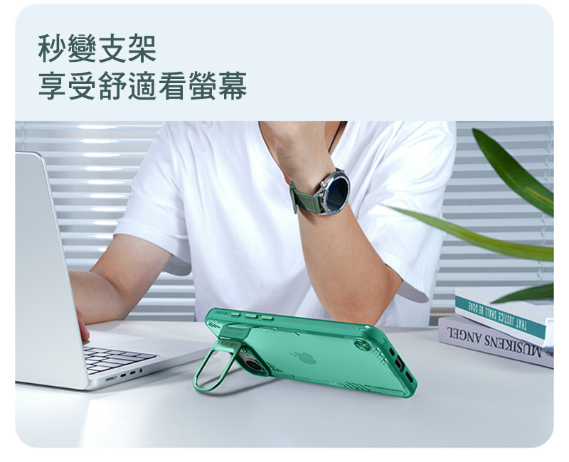 .創新鏡蓋支架設計,兼顧鏡頭保護與手機支架功能