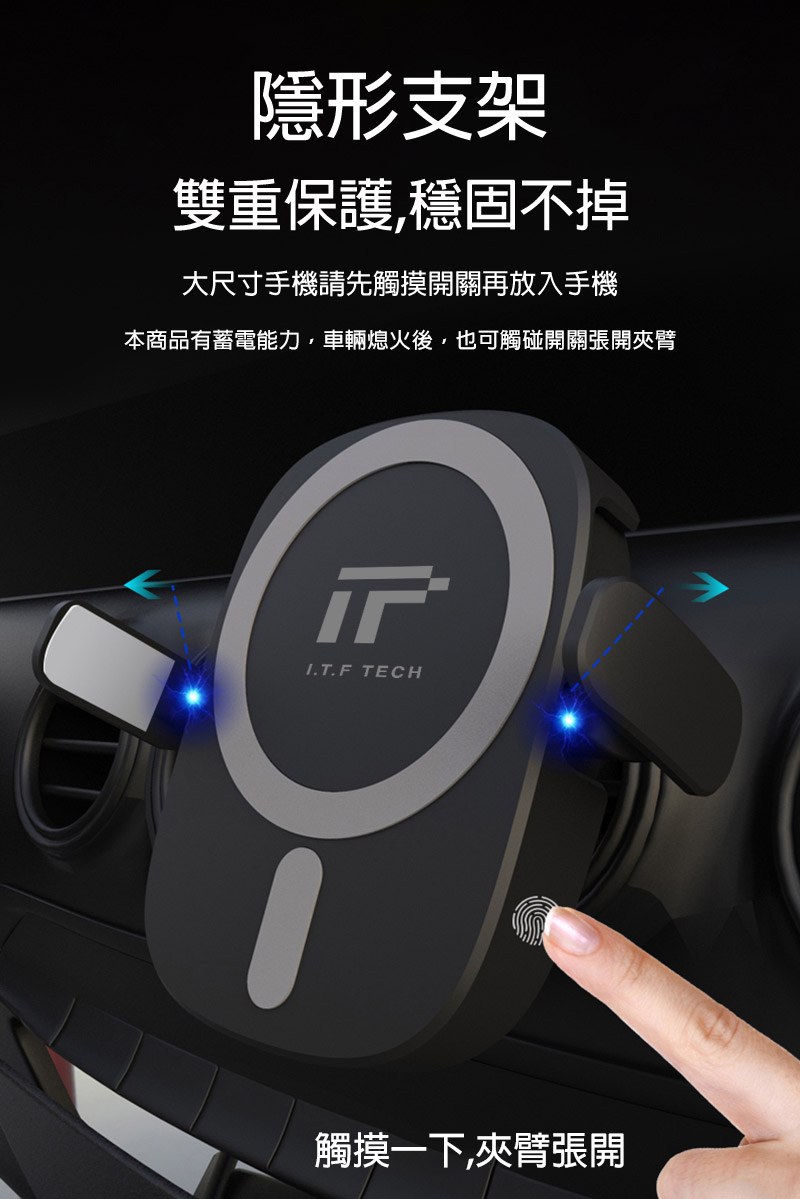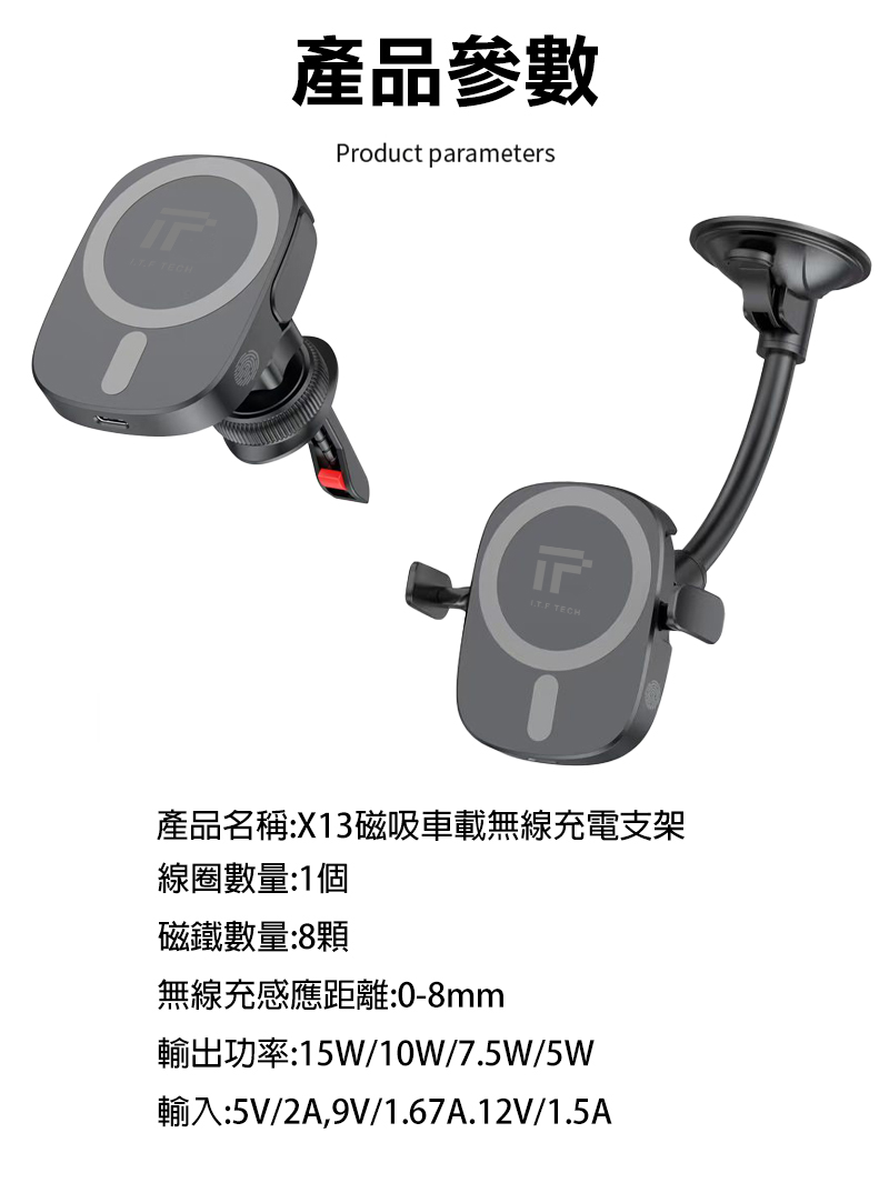 產品規格.品名:I.T.F X13 可夾式磁吸充電車用支架